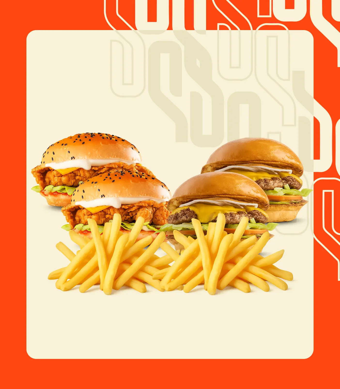استمتع بوجبة برجر متكاملة تكفي 4 أشخاص، تضم 2 برجر لحم طري ولذيذ مع البطاطس و 2 برجر دجاج بتتبيلة مميزة مع البطاطس , جاهز للتقديم فورًا ليضيف طعمًا لذيذًا وسريعًا لمائدتكم.